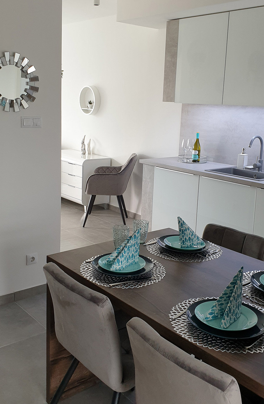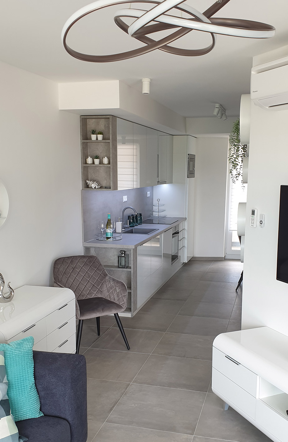 Új építésű 2020-ban átadott épület. Balatonszemesen a kikötő mellett található modern bútorozású apartman. 1+1 szoba - erkély - zuhanyzó - parkoló